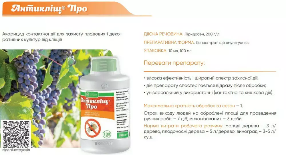 Антиклещ Про - Акарицид контактного действия для защиты плодовых и декоративных культур от клещей.