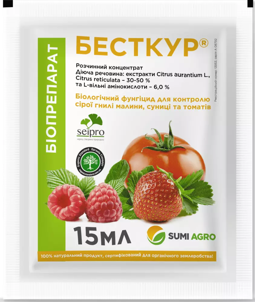 Бесткур - Биологический фунгицид для контроля серой гнили малины, земляники и томатов/