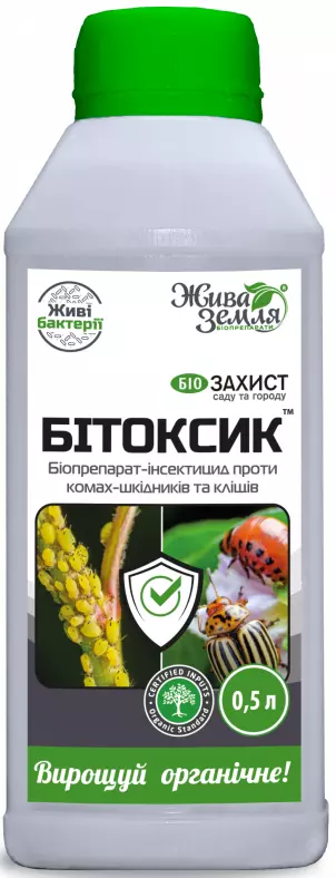 Битоксик - Биологический инсектицид изготавливается на основе Bacillus thuringiensis var. thuringiensis, который, кроме эндотоксина, содержит термостабильный экзотоксин. Благодаря тому, что в препарате содержатся токсины двух типов, он имеет широкий спектр действия против чешуекрылых, сосущих и жесткокрылых вредителей.