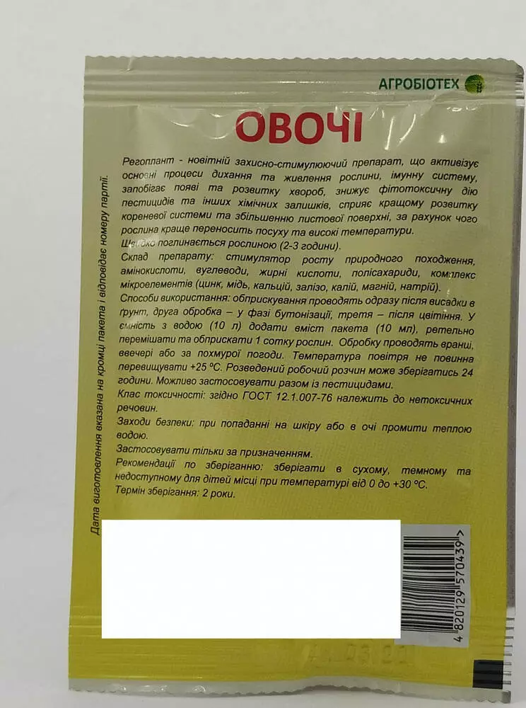 Регоплант – новітній захисно-стимлюючий препарат,що активізує основні процеси дихання та живлення рослини, імунну систему,запобігає появі та розвитку хвороб,знижує фітотоксичну дію пестицидів та інших хімічних залишків,сприяє кращому розвитку кореневої системи та збільшенню листової поверхні, за рахунок чого рослина краще переносить посуху та високі температури. Швидко поглинаеться рослиною (2-3 години).