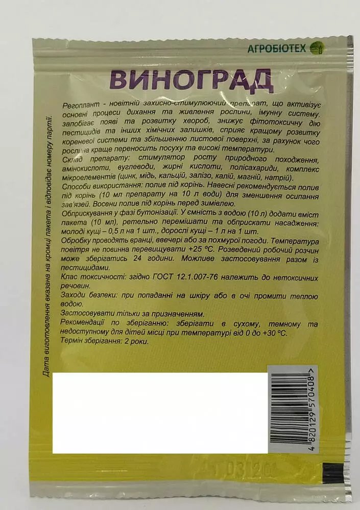 Склад препарату:стимулятор росту природного походження,мікроелементів (цинк,мідь,кальцій,залізо,калій,магній,натрій).