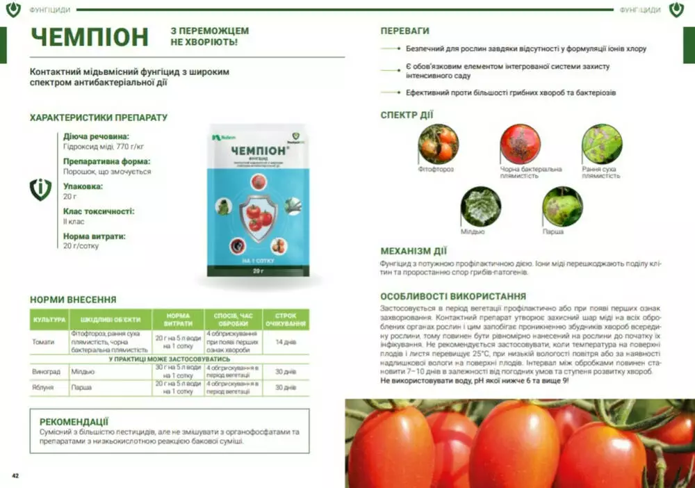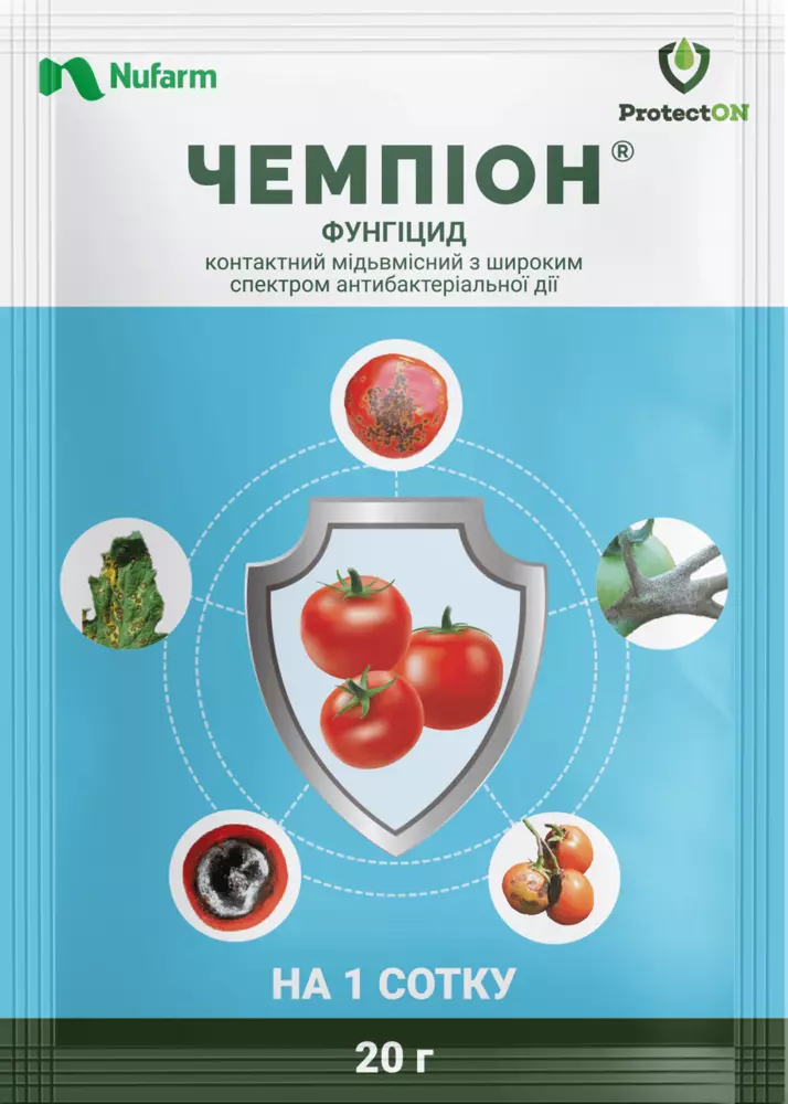 Чемпион - Контактный медьсодержащий фунгицид с широким спектром антибактериального действия.