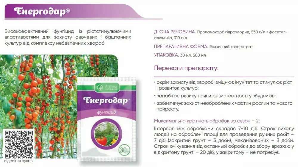 Енергодар - Высокоэффективный фунгицид с ростстимулирующими свойствами для защиты овощных и бахчевых культур от комплекса опасных болезней.