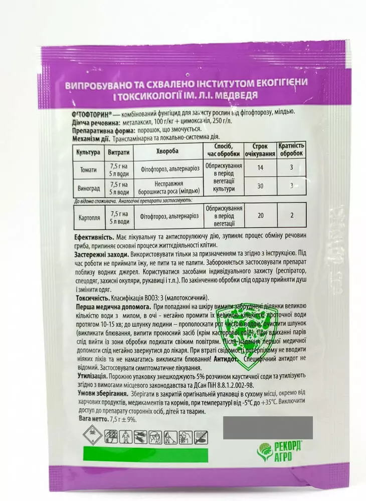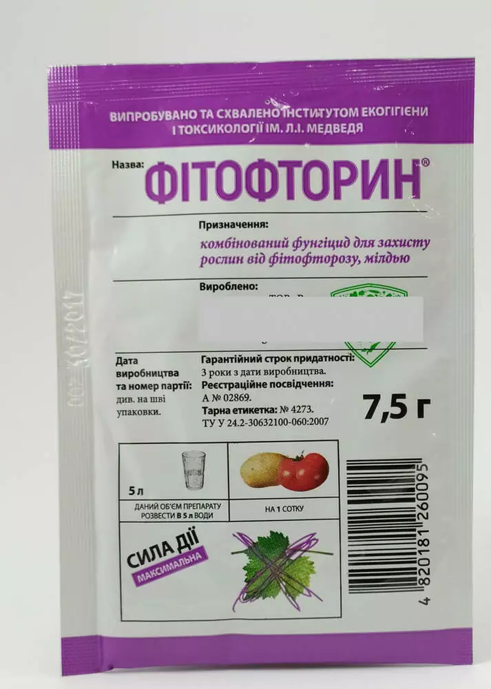 | Томати | 7,5 г | Фітофтороз,