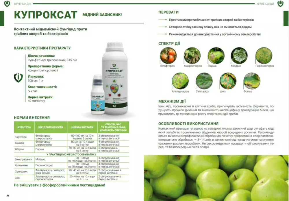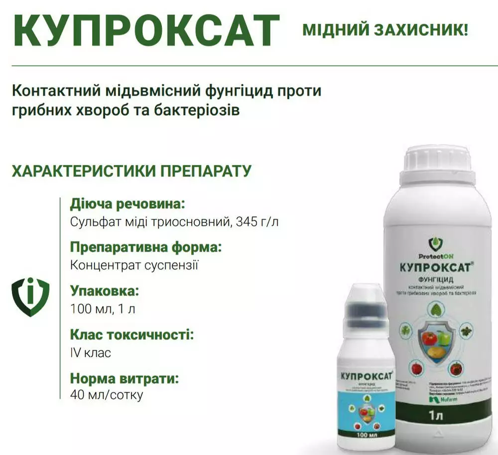 Купроксат - Контактный медьсодержащий фунгицид против грибных болезней и бактериозов.
