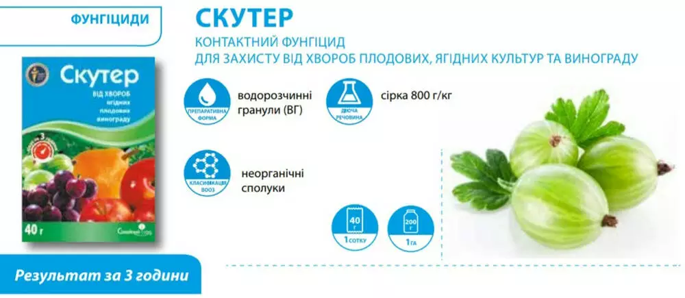 Скутер - Контактный фунгицид для защиты от болезней плодовых, ягодных культур и винограда.
