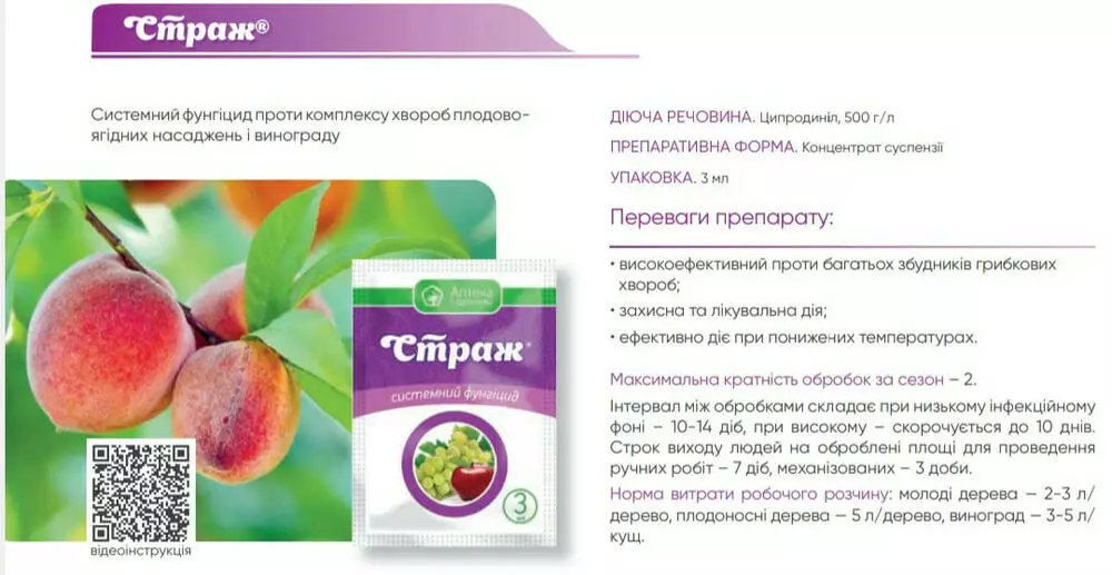 Страж - Системный фунгицид против комплекса болезней плодово-ягодных насаждений и винограда.