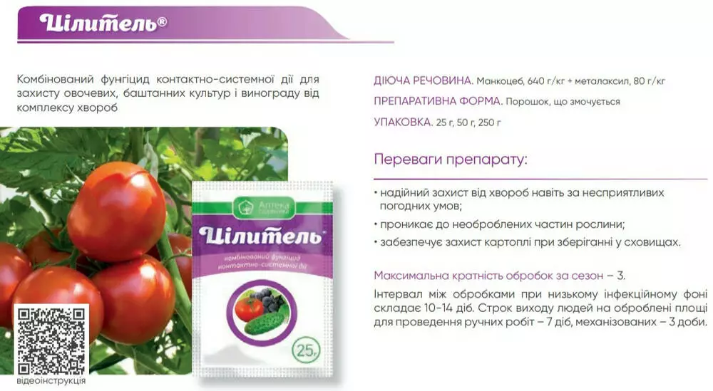 Целитель - Комбинированный фунгицид контактно-системного действия для защиты овощных, бахчевых культур и винограда от комплекса болезней.