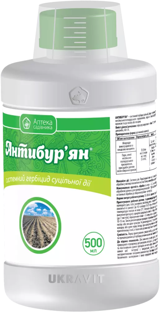Антибурьян - Системный гербицид сплошного действия против широкого спектра сорняков для применения на парах, землях несельскохозяйственного пользования и после уборки урожая предшественника.