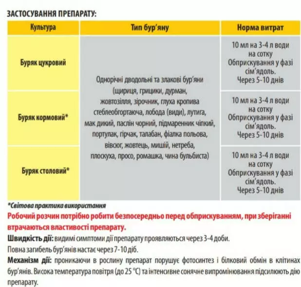 Свекла кормовая 10 мл на 3-4 л воды на сотку. Опрыскивание в фазе семядолей. Через 5-10 дней