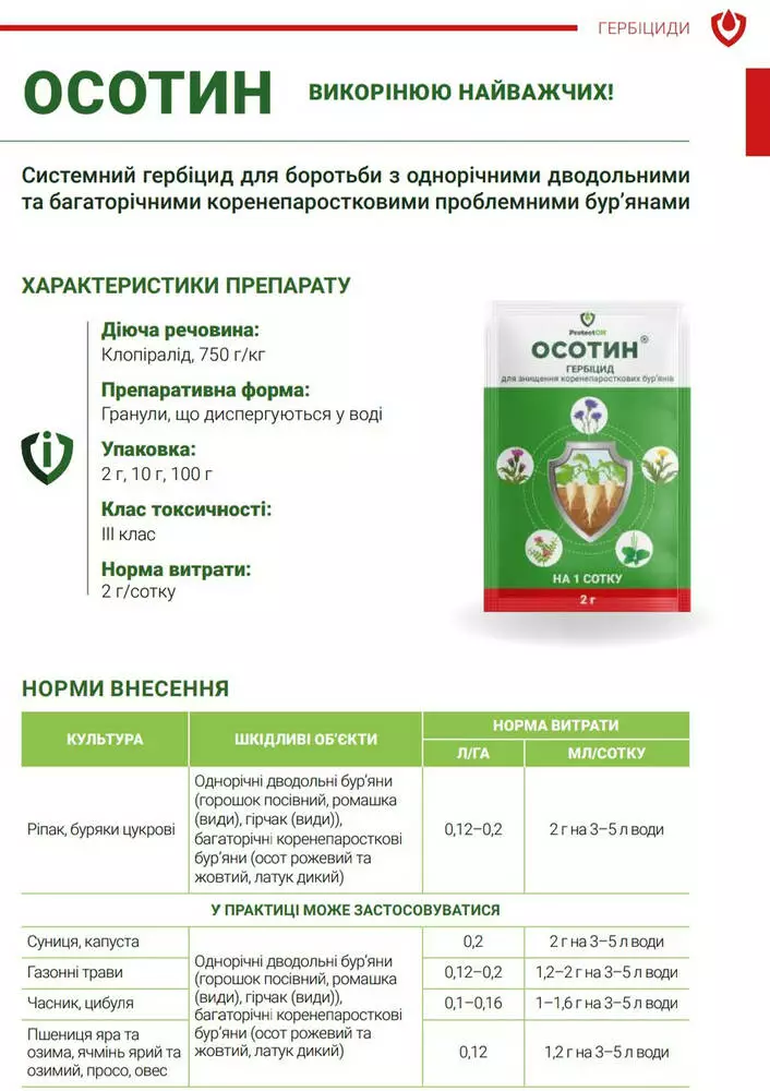 Осотин - Системный гербицид для борьбы с однолетними двудольными и многолетними корнеотпрысковыми проблемными сорняками.
