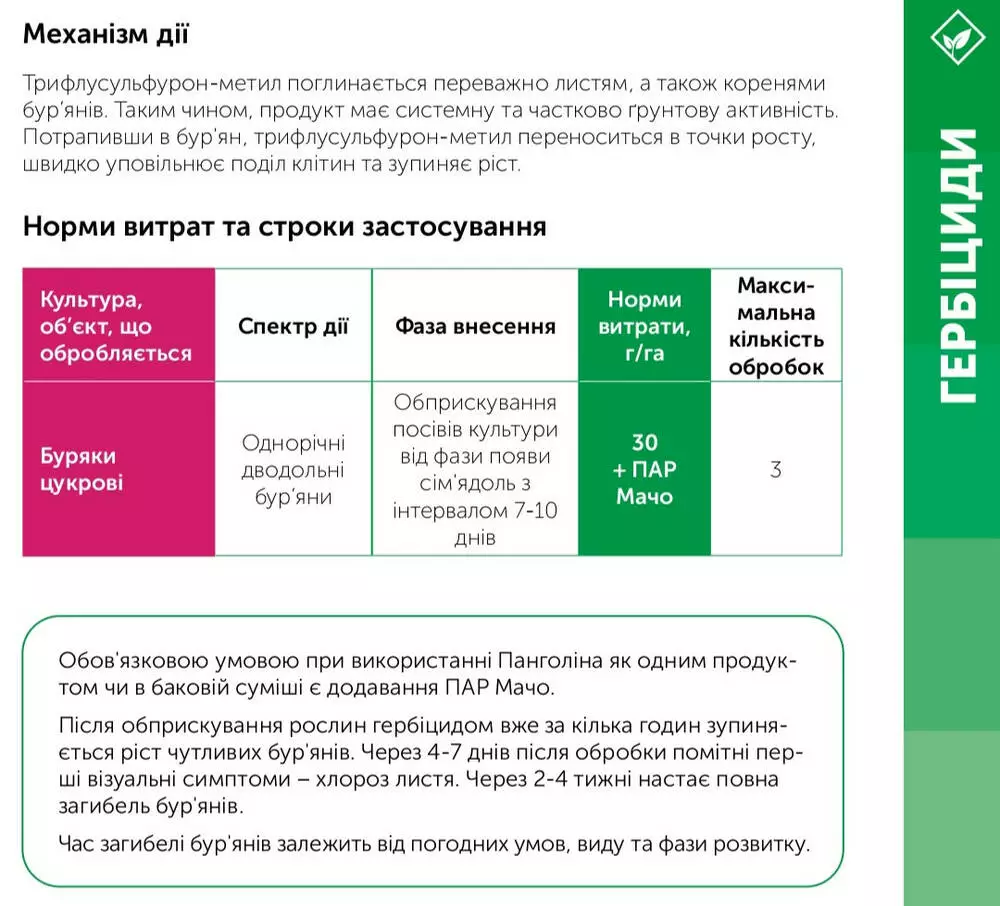 Обязательным условием при использовании Панголина как одним продуктом или в баковой смеси является добавление ПАВ Мачо.