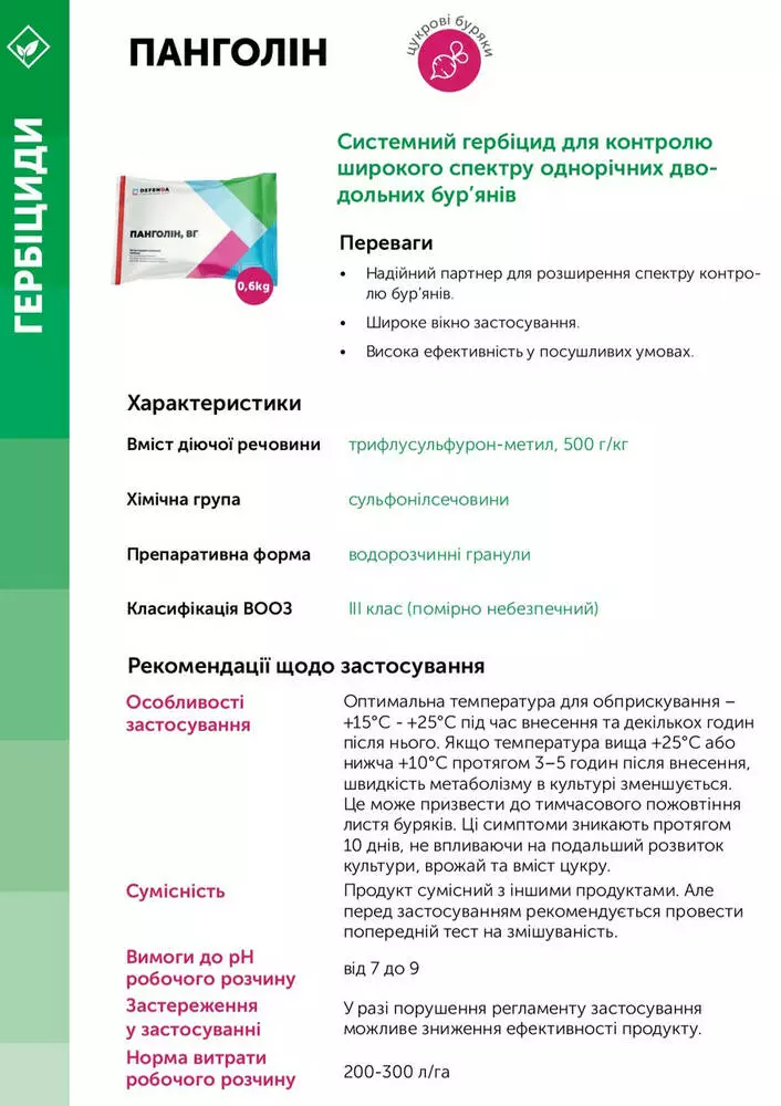 Панголин - Системный гербицид для контроля широкого спектра однолетних двудольных сорняков.