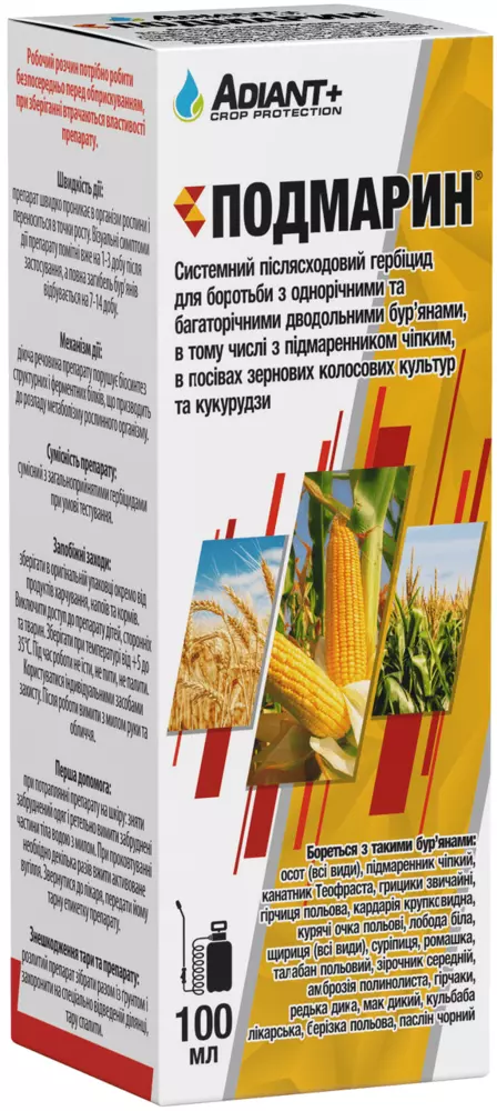 Подмарин - Системный послевсходовый гербицид для борьбы с однолетними и многолетними двудольными сорняками, в том числе с подмаренником цепким, в посевах зерновых колосовых культур и кукурузы.