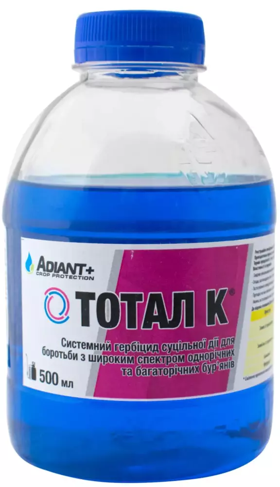 Тотал К - Высокоэффективный системный гербицид сплошного действия для борьбы с широким спектром однолетних и многолетних сорняков, в том числе кустарников. Десикант для зернобобовых и подсолнечника.