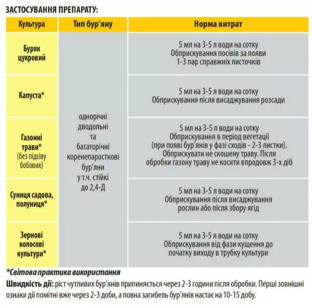| Культура | Тип сорняка | Норма расхода |