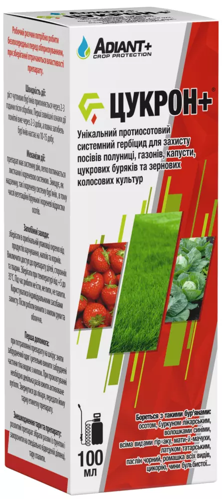 Цукрон+ - Уникальный против осота системный гербицид для защиты посевов клубники, газонов, капусты, сахарной свеклы и зерновых колосовых культур.