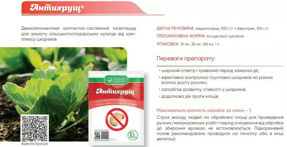 Антихрущ - Двухкомпонентный контактно-системный инсектицид для защиты сельскохозяйственных культур от комплекса вредителей.