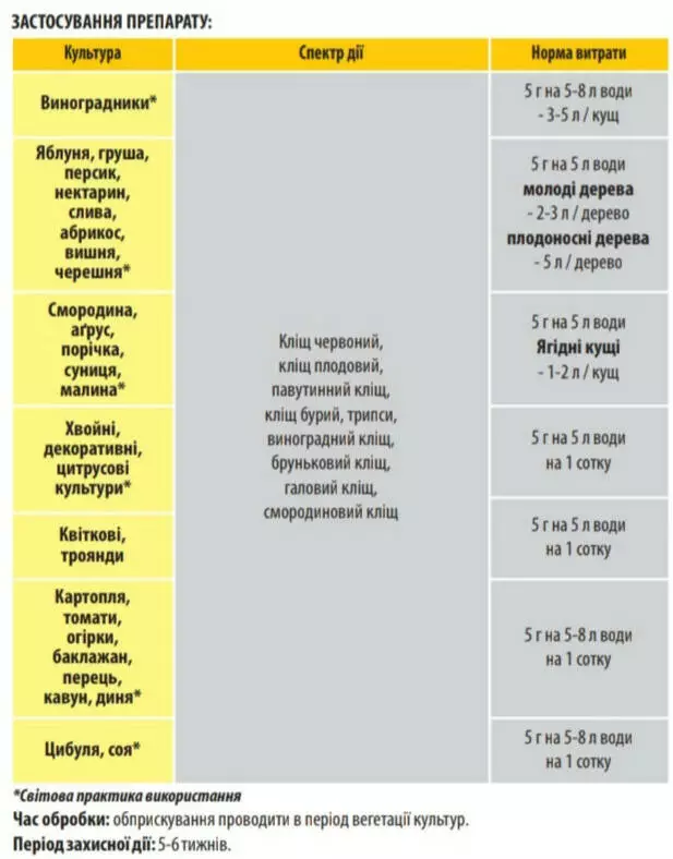хвойных культур и винограда от всех видов клещей.