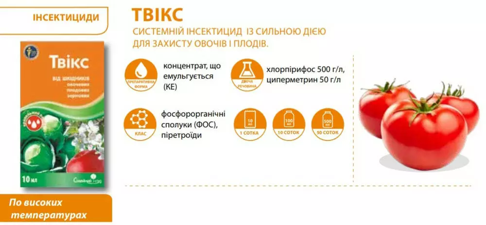 Твикс - Системный инсектицид с сильным действием для защиты овощей и плодов.