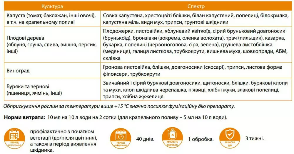 Особенно эффективен в тех случаях, когда одновременно есть насекомые разных фаз развития (имаго, личинки, яйца).