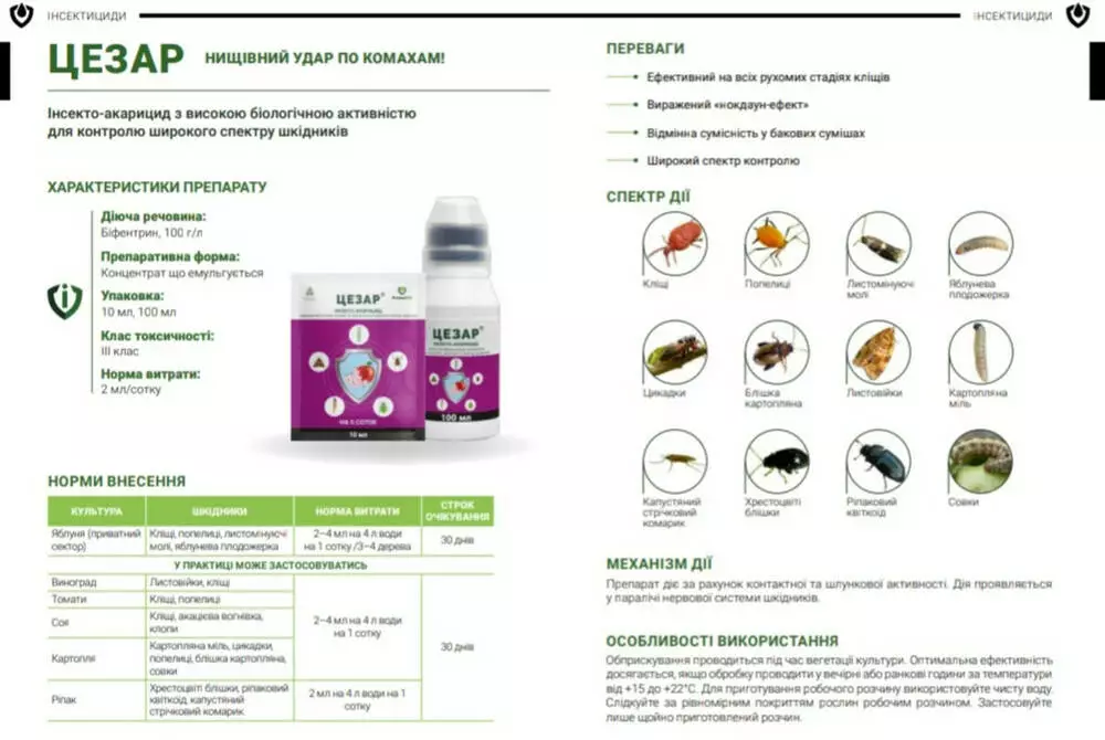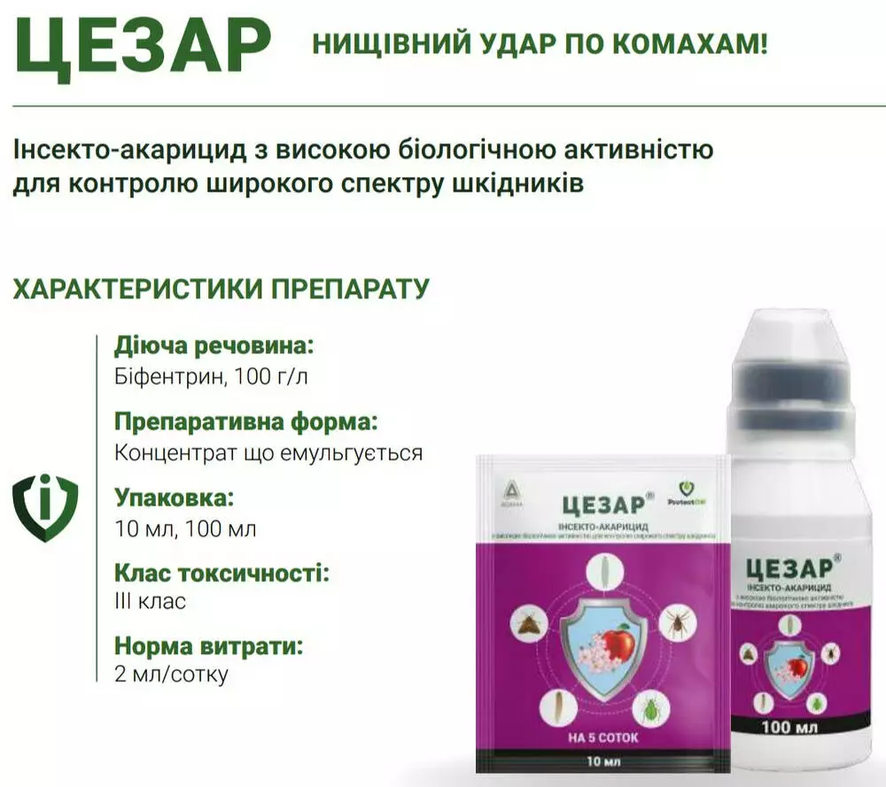 Цезарь - Инсекто-акарицид с высокой биологической активностью для контроля широкого спектра вредителей.