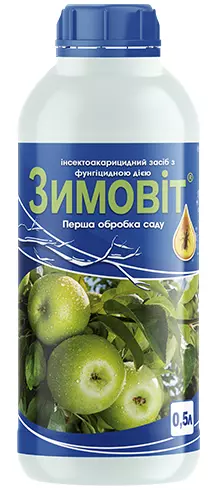 Зимовит - инсектоакарицидное средство на основе минерального масла, которое применяется для обработки садовых деревьев и кустов для уничтожения зимующих стадий насекомых и клещей. После обработки препарат образует пленку на поверхности растений, нарушает воздушно-водный баланс насекомых, что приводит к гибели вредителей и их личинок. У насекомых не возникает резистентности к препарату, что позволяет использовать его ежегодно.