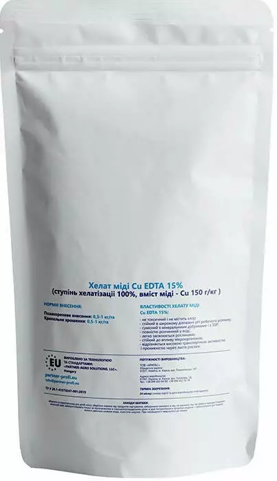 Состав: Степень хелатизации - 100%; Содержание Меди (Cu) - 150 г/кг