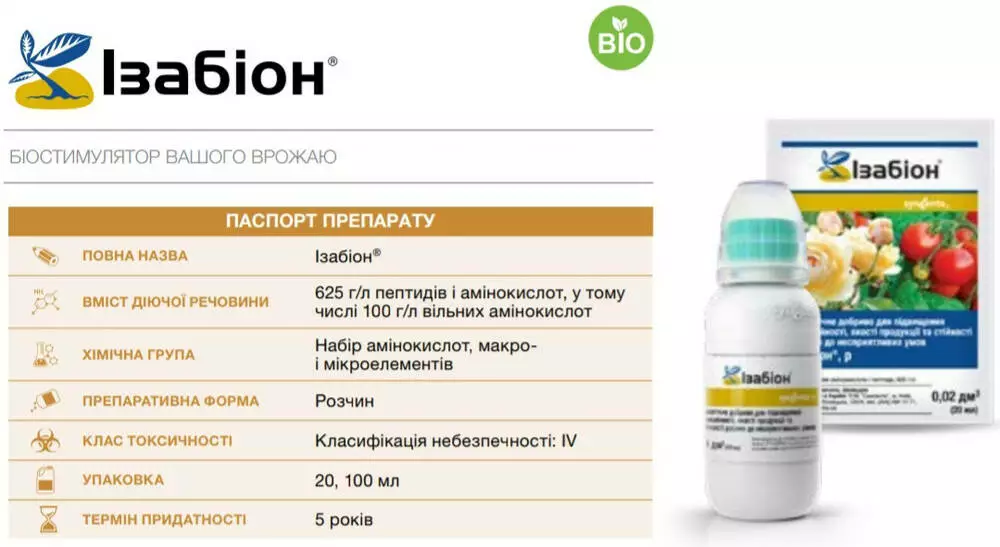 Изабион - Это новое современное биологическое удобрение животного происхождения. Изабион состоит из полного спектра необходимых для быстрого роста и развития растения аминокислот и пептидов, на синтез которых оно не тратит дополнительной энергии.