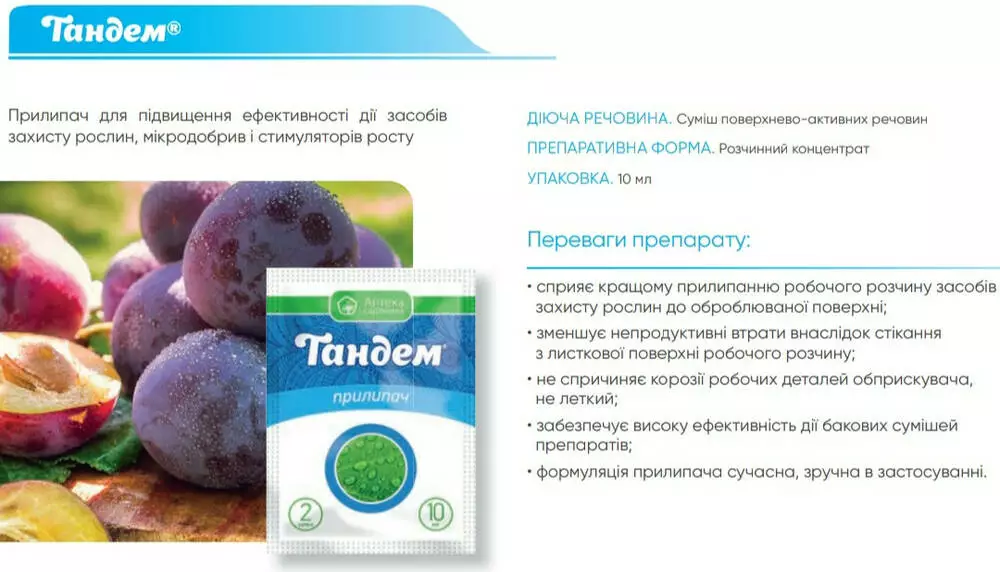 Тандем - Прилипатель для повышения эффективности действия средств защиты растений, микроудобрений и стимуляторов роста.