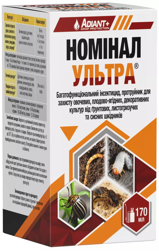 Номинал Ультра - Многофункциональный инсектицид, протравитель для защиты овощных, плодово-ягодных, декоративных культур от почвенных, листогрызущих и сосущих вредителей.