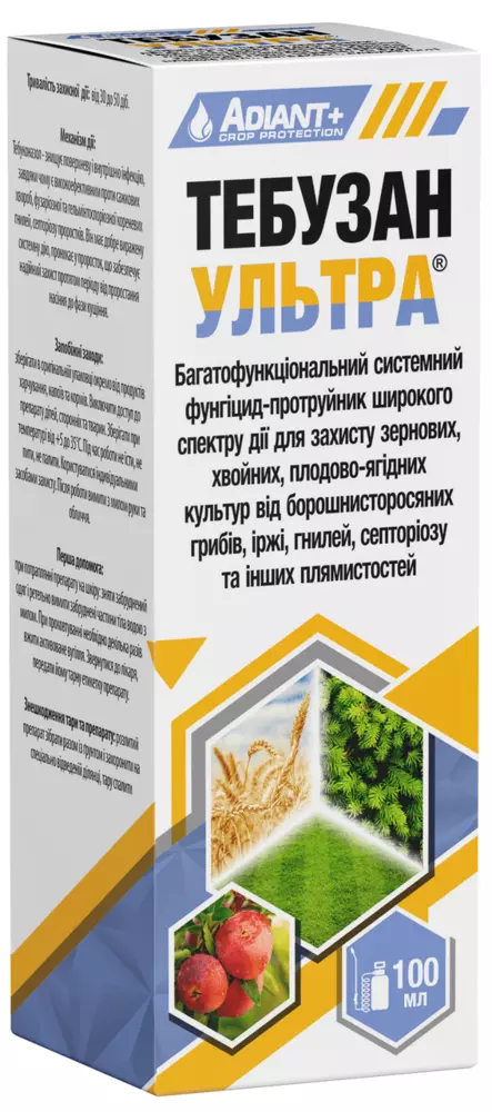 Тебузан Ультра - Многофункциональный системный фунгицид-протравитель широкого спектра действия для защиты зерновых, хвойных, плодово-ягодных культур от мучнисторосяных грибов, ржавчины, гнилей, септориоза и других пятнистостей.