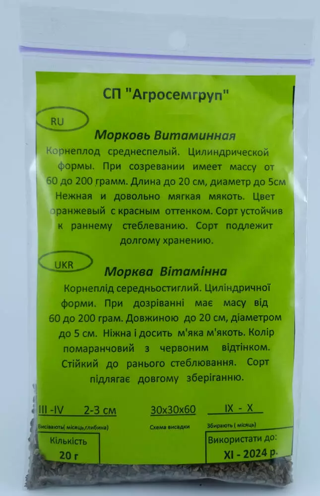 Длина созревшей моркови до 20 см, средняя 15 см;
