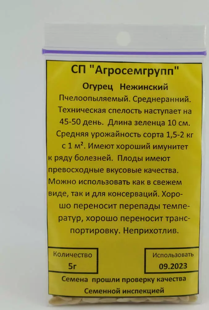 Это сорт огурцов, индетерминантный по типу роста, по времени созревания среднеранний. Техническая спелость плодов наступает на 45 – 50 день. На практике период созревания зависит от погодных условий, в разных климатических зонах может немного отличаться от заявленного. Сорт пчелоопыляемый, плодоносит лучше в открытом грунте. При тепличном выращивании могут быть проблемы с опылением. Для получения раннего урожая огурцов стоит использовать парники, теплые гряды, временные укрытия в виде дуг и укрывного материала. Главная характеристика огурца, предназначенного для засолки, — качество мякоти. Нежинские зеленцы всегда славились своей плотной, сочной мякотью. Огурцы остаются хрустящими при длительном нахождении в рассоле.