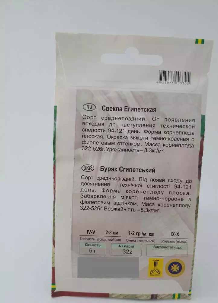 Египетская – сорт среднепозднего срока созревания. От появления первых всходов до полной зрелости корнеплодов проходит 94-121 дней. Эта свекла столовая, то есть пригодна для употребления в пищу. Сорт имеет хорошую лежкость, поэтому подходит для длительного хранения. При этом корнеплоды сохраняют свой первоначальный вид и вкусовые качества до весны. Свекла этого сорта пригодна для выращивания на всей территории России. Она хорошо переносит засуху и имеет повышенную стойкость к цветушности.