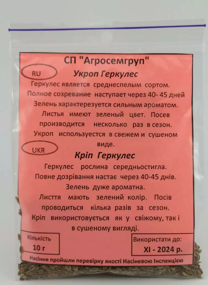Нежный, ароматный, сорт укропа. Среднеспелый сорт. Растение мощное, раскидистое, высотой 18-25 см, не склонно к полеганию. Листья крупные, ароматные, темно-зеленые с восковым налетом. Первый сбор зелени можно проводить через 35-45 дней полное созревание наступает через 40-45дней. Рекомендуется для выращивания в открытом грунте и пленочных укрытиях. Используют в свежем и сушеном виде, для консервации и засола.