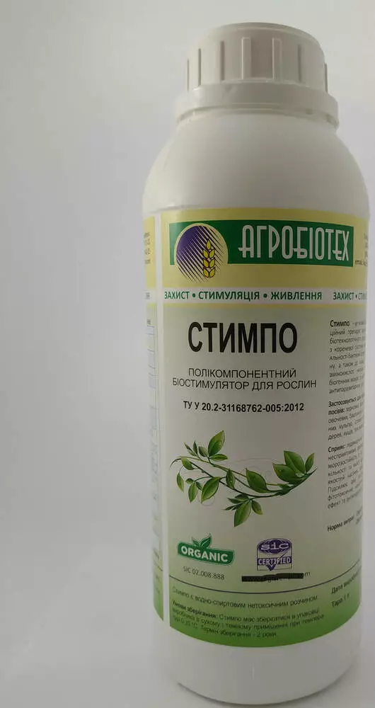 СТИМПО - це новий захисно-стимулюючий композиційний препарат органічного походження, продукт біотехнологічного культивування грибів-мікроміцетів з кореневої системи женьшеню і продуктів життєдіяльності бактерій StreptomycesAvermetilis-аверсектину, а також до складу препарату входить комплекс амінокислот, жирних кислот, полісахаридів, солі біогенних макро та мікроелементів, а також сполуки з анти паразитарною дією.
