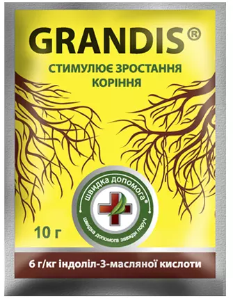 Grandis - препарат, предназначенный для корнеобразования у растений. Создан на основе индолил-3-масляной кислоты - биологического вещества, которое стимулирует формирование корневой ткани. Используется Grandis® для припудривания свежих срезов у черенков плодовых, ягодных, цветочных и овощных культур, полива семян.
