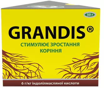 Grandis - препарат, предназначенный для корнеобразования у растений. Создан на основе индолил-3-масляной кислоты - биологического вещества, которое стимулирует формирование корневой ткани. Используется Grandis® для припудривания свежих срезов у черенков плодовых, ягодных, цветочных и овощных культур, полива семян.